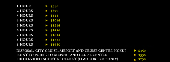 * Because of space constraint in the limousine boot space, only 3 pieces of suitcases are allowed. A separate vehicle is required for carriage of the luggage. A fee of $60 is payable for this service.